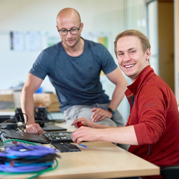 Als Fachinformatiker/in der Fachrichtung Systemintegration bist Du für die Planung und die Konfiguration von IT-Systemen verantwortlich. Du installierst und richtest verschiedene Hardwarekomponenten ein. Außerdem bist Du für die Verwaltung und Betreuung unseres Betriebssystems und unserer Netzwerke verantwortlich. Bei auftretenden Störungen bist Du mit modernen Diagnosesystemen zur Stelle und hilfst den Nutzern bei Anwendungsproblemen. Unter anderem lernst Du in der Ausbildung, wie Du Betriebssysteme und deren Anwendungsbereiche unterscheidest und was Du bei der Anpassung und Konfiguration beachten musst. Außerdem erfährst Du, wie Du Programmierlogik und -methoden anwendest und Systeme richtig testest.