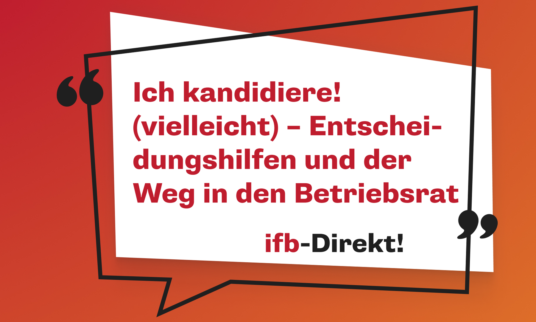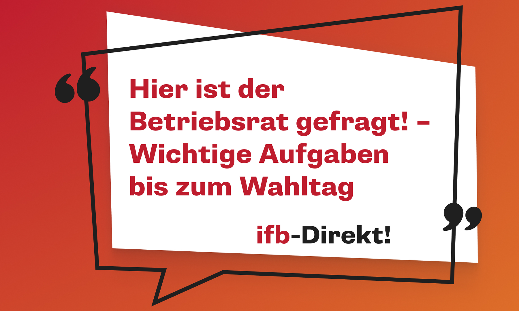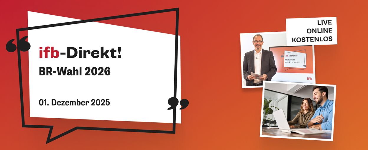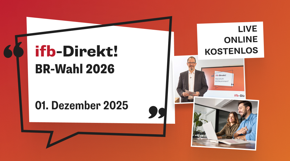 In diesem ifb-Direkt! bekommen Sie Impulse zu verschiedenen Themen, die Ihnen für die BR-Wahl 2026 Orientierung geben – egal, ob Sie schon ein erfahrenes BR-Mitglied, Wahlvorstand oder ein potenzieller Kandidat sind.