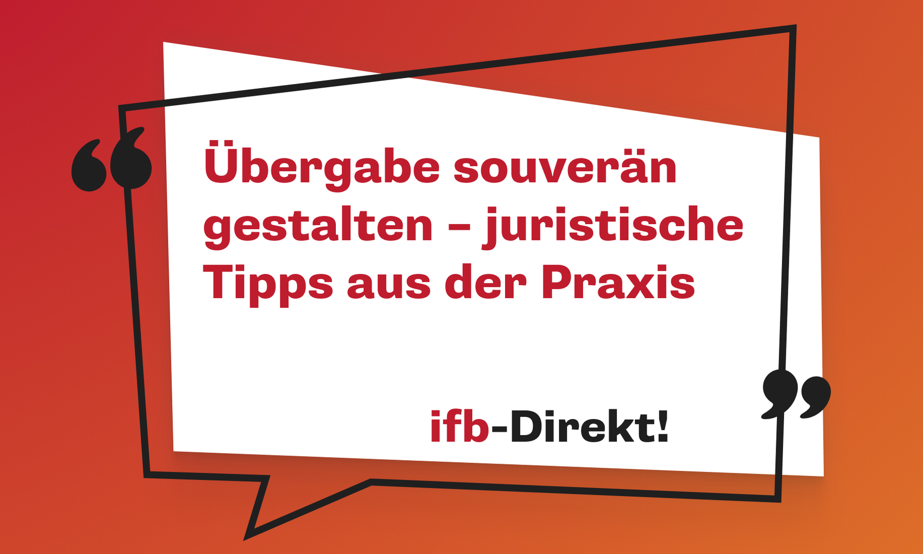 In unserer kostenlosen Online-Veranstaltung erfahren Sie, wie Sie die Übergabe rechtssicher und strukturiert gestalten, KI gezielt zur Unterstützung nutzen und Ihre eigene Motivation im Wandel aufrechterhalten. Drei kompakte Impulse – praxisnah, verständlich und direkt umsetzbar.